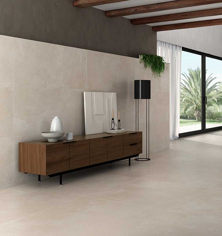Porcelanato esmaltado con baja absorción de agua, aumentando su resistencia a los impactos inspirado en el cemento. Su lenguaje arquitectónico es contemporáneo y urbano, a través de la impresión digital reproduce diferentes patrones y texturas con un alto nivel de realismo. Bordes rectificados (canto cortado recto en ángulo de 90º ) que permite una superficie ininterrumpida con una mayor sensación de amplitud. Su variación tonal V3, permite obtener una superficie con variación de tono y color moderado en cada una de las piezas, lo que aporta dinamismo y movimiento en el diseño. Debido a su acabado mate facilita el mantenimiento. Además, al tener la capacidad de absorber la luz es recomendable para espacios abiertos, semi cubiertos, interiores y exteriores o con entrada de iluminación natural. Recomendado para espacios comerciales de tráfico medio.